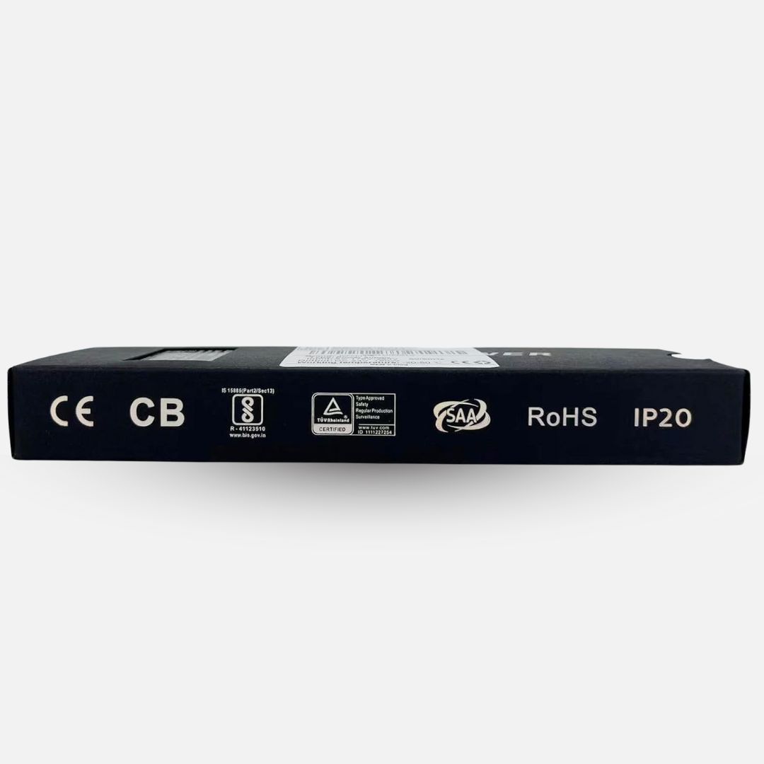 The JOYLIT 24V LED Driver / Transformer | AC 175-264V to DC 24 | 150W is engineered for consistent, professional-grade power delivery, offering a stable 24-volt output designed for demanding LED lighting and electronic applications. Built with industrial reliability in mind, it carries TUV, CE, RoHS, and BIS certifications, ensuring safe operation in both commercial and residential settings. Delivering up to 150 watts of clean, constant voltage at 6.25 amps, it keeps LED strip lights, 3D printers, and low-voltage systems running smoothly without flicker or fluctuation.
