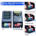 Installation is quick and frustration-free thanks to push-down terminal blocks that accept up to 4mm² cable – no screwdriver required. Its slim 48mm width and compact form factor allow for easy concealment in cabinets, coving, and tight installations while maintaining safe airflow.
