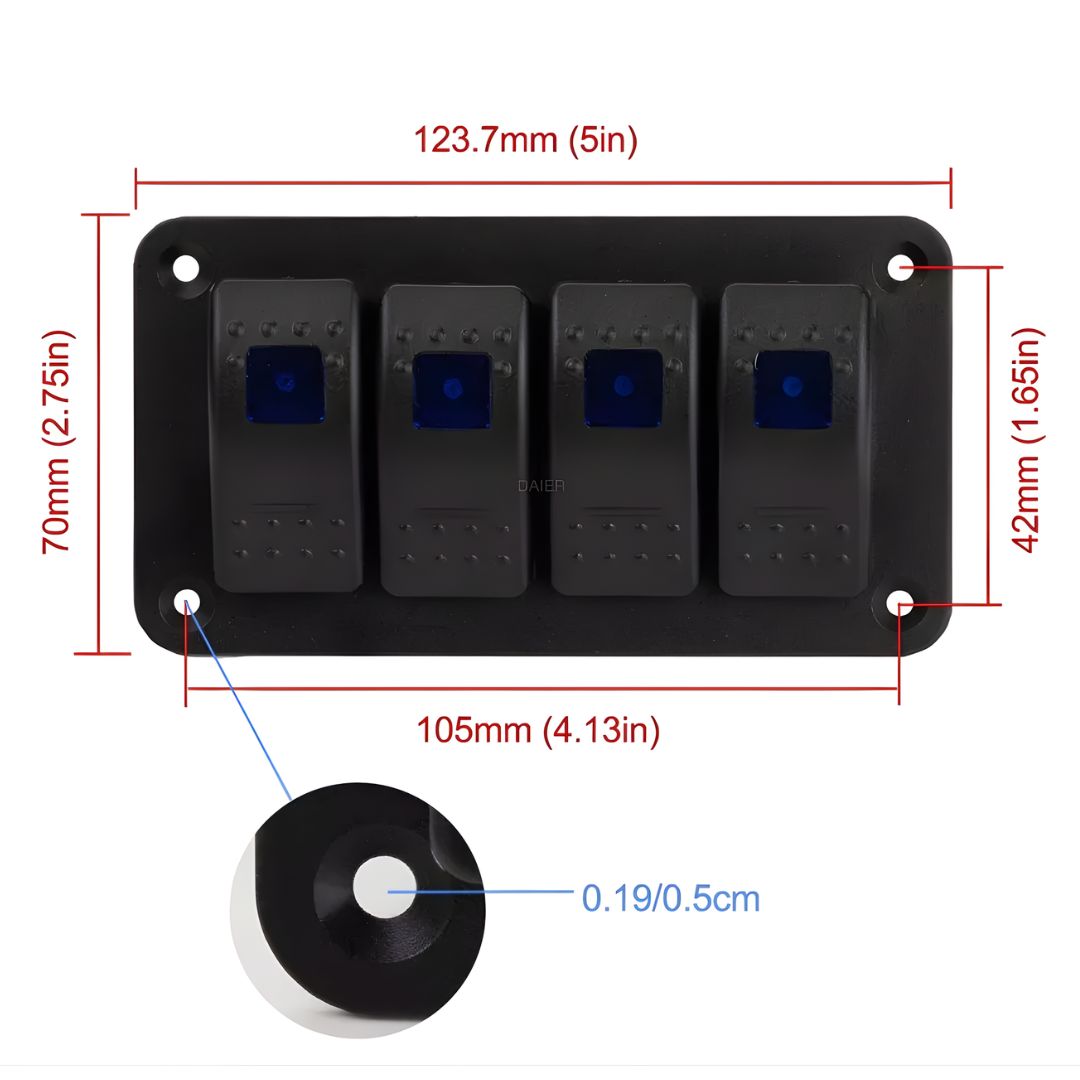 4 Gang Rocker Switch Panel – Provides control for four separate circuits simultaneously.